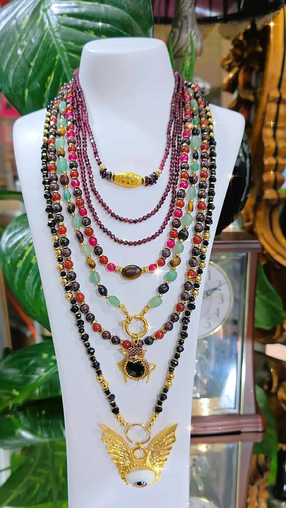 COLLAR VARIOS HILOS MONEDA ARBOL/ ESCARABAJO